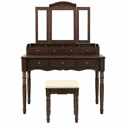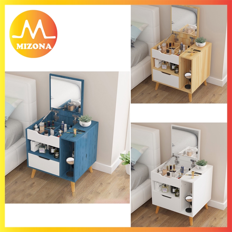 It is made with mdf material and foam with polyester cotton seat cover together with a black velvet lining in the jewelry cabinet. Vanity table with mirror cabinet: This makeup vanity is calling your name.